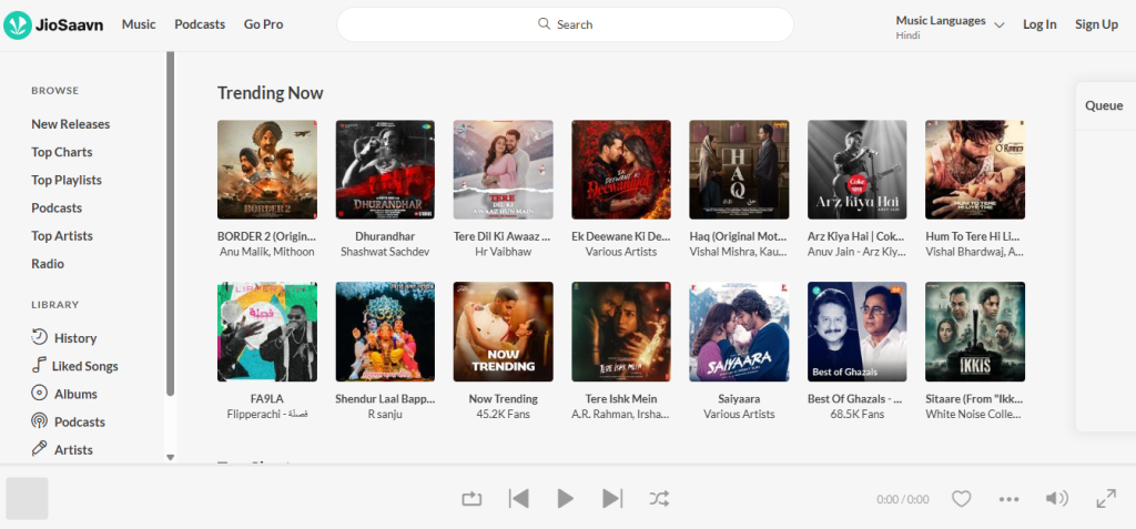 Launched in 2010, Gaana is one of India’s longest-running music streaming platforms and has built a substantial legacy catalogue, particularly in Bollywood soundtracks and regional film music.