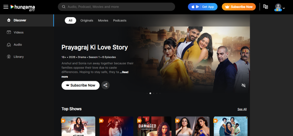 - Intentionally curated library: Compared to larger platforms, Hungama’s catalogue feels more selective, which can be appealing for users who prefer curated content over endless discovery.